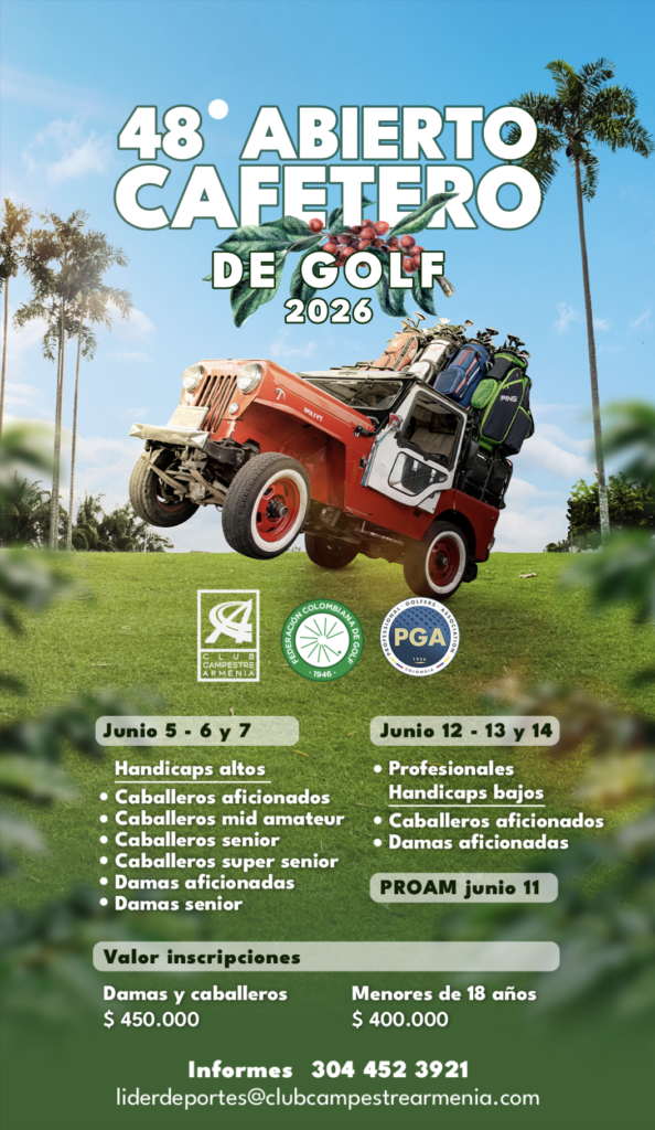 El Club Campestre de Armenia será sede del 48º Abierto Cafetero de Golf del 5 al 14 de junio de 2026, reuniendo a aficionados y profesionales en uno de los torneos más tradicionales del país.